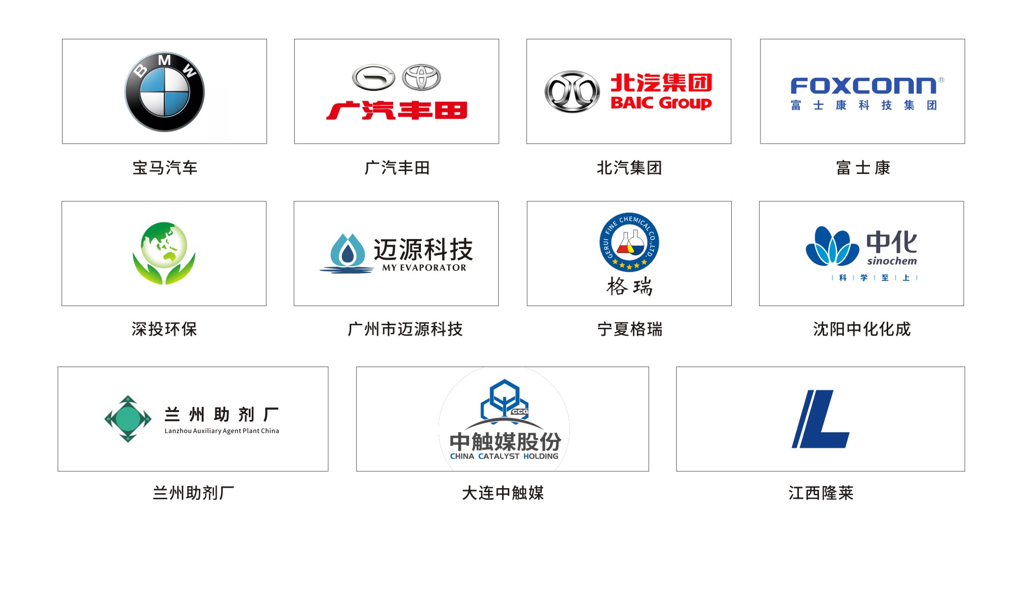 目前,公司已在成都、大連、蘇州、內(nèi)蒙古等地設(shè)立了辦事機(jī)構(gòu),服務(wù)的客戶包括深投環(huán)保、寶馬汽車(chē)、富士康、廈門(mén)嘉戎、寧夏格瑞,蘭州助劑廠、江西隆萊、大連中觸媒等行業(yè)內(nèi)領(lǐng)頭企業(yè),在國(guó)內(nèi)落地項(xiàng)目有170多家。